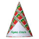 Personalized paper party hat with the Portuguese Flag and the word PORTUGAL below in the colors of the flag. Tiled for a better aesthetic. Personalize by adding a name in the space provided within the white, squiggly squares. Fun for the guest of honor at birthday parties. Cool for kids at family reunions.
