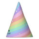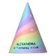 Complete her birthday look with this vibrant rainbow 4th birthday party hat. Specifically designed for a little girl's fourth trip around the sun, this cone-shaped party accessory features a modern pastel rainbow aesthetic with soft watercolor textures and whimsical typography. This boho-inspired headwear is the perfect photo prop for her 4th birthday cake smash or milestone pictures. Whether she’s the star of a coordinated fourth birthday party or hosting a magical garden celebration, this cheerful and bright hat adds a professional, aesthetic touch to your toddler’s birthday outfit. Easily personalise the name to create a unique and joyful keepsake for her special 4th year.