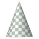 Soft sage green and white checkerboard Party Hat with a refreshing and organic vibe. Ideal for minimalist weddings, garden parties, and elegant events. The natural color palette adds calm sophistication to any celebration.