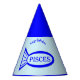 Ce magnifique casquette de fête présente un contour de poisson bleu avec de jolis détails à l'intérieur. Il y a aussi le texte qui dit Pisces à l'intérieur du contour du poisson. Ce design est idéal pour les personnes ayant un anniversaire entre le 19 février et le 20 mars.