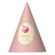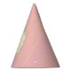 Make the celebration even more adorable with this sleepy cat birthday party hat featuring a pink kitty, tiny party hat illustration, cream label styling, mint bow accents, and cheerful yellow stripes. A sweet matching accessory for a 1st birthday party.