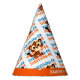 Nom personnalisé trois casquette de papier fête d'anniversaire avec un tigre pour célébrer le 3e anniversaire d'un petit garçon. Design moderne avec couleurs orange et bleu pour une fête pour enfants.