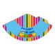 Jouet de dessin animé coloré s'entraîne sur une bannière bleue. Modèles pour ajouter votre nom ou supprimer le texte dans les zones de texte pour laisser vide. Arrière - plan multicolore à rayures arc-en-ciel.