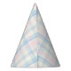These party hats feature a timeless teddy bear design with pink and blue plaid accents, perfect for a coordinated twins Beary First birthday celebration.
