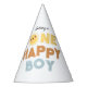 Un beau dessin de casquette de fête d'anniversaire dessiné à la main. Un mignon "One happy boy" sur le thème du premier anniversaire casquette de fête. Un beau thème casquette d'anniversaire de soleil d'été qui peut être customisé à vos détails.