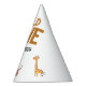 Célébrez le 1er anniversaire de votre petit garçon avec ces casquettes de papier de première fête au thème du safari fantaisiste. Le design présente un groupe d'adorables animaux de la jungle dans un design simple et audacieux et le nom du garçon d'anniversaire.