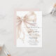 Cette invitation pour la Première Sainte Communion présente un doux nœud en satin beige rosé réalisé à partir d'un chapelet en perles, accompagné d'une croix pendante et d'un détail central en forme de cœur en perles. Le design religieux élégant est placé sur un fond blanc épuré avec une typographie mixte moderne, créant un look raffiné et significatif pour la célébration de la communion d'une jeune fille. Parfait pour un événement sacramentel catholique, cette invitation combine un symbolisme délicat du chapelet avec une écriture gracieuse et un texte serif pour un style intemporel et féminin. Personnalisez le texte avec le nom de votre enfant, la date, l'heure et les détails de l'événement.