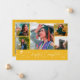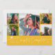 Carte de photo d'annonce de remise de diplôme moderne et simple avec 5 photos sur le devant et 1 au dos. Le texte manuscrit dit "Chapitre Terminé". Ajoutez le nom du diplômé, les informations et le message pour personnaliser cette carte. Couleur jaune.