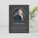 Faire-part commémoratif moderne en gris foncé avec texte blanc avec une photo ronde de votre être aimé et un design de rédaction de bon goût. En mémoire aimante de la faire-part personnalisée avec une photo. Carte élégante pour annoncer le décès d'un être cher.