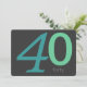 De grands nombres bleus et vert menthe que vous pouvez customiser pour lire n'importe quel âge que vous voulez sur un arrière - plan gris fusain sur le devant, un dos vert menthe avec du texte au charbon que vous pouvez facilement customiser avec les informations de votre fête d'anniversaire sur le dos. Cette invitation d'anniversaire facile à customiser est idéale pour tout âge de 21 à 30e anniversaire, 40e anniversaire, 50e anniversaire, jusqu'au 99e anniversaire!
