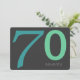 De grands nombres bleus et vert menthe que vous pouvez customiser pour lire n'importe quel âge que vous voulez sur un arrière - plan gris fusain sur le devant, un dos vert menthe avec du texte au charbon que vous pouvez facilement customiser avec les informations de votre fête d'anniversaire sur le dos. Cette invitation d'anniversaire facile à customiser est idéale pour tout âge de 21 à 30e anniversaire, 40e anniversaire, 50e anniversaire, jusqu'au 99e anniversaire!
