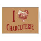 La charcuterie est un terme de la gastronomie française qui décrit les viandes conservées. Un cadeau parfait pour un gourmet ou un amateur de nourriture, ces tee - shirts graphiques et autres objets ont l'expression "I heart charcutrie", avec le coeur formé de saucisses, jambon, terrines et autres conserves de viande