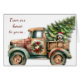 Sur le devant de cette mignonne carte de voeux de Noël, un camion de ferme de style rétro est décoré d'une couronne de Noël et porte à la maison un arbre à feuillage persistant fraîchement coupé. Un Collie Dog à épaulettes gris et blanc porte un chapeau de Père Noël rouge et blanc et regarde à l'arrière du camion. Le texte rouge d'un côté dit "De chez nous à la vôtre...", et le sentiment est maintenu à l'intérieur. Tout le texte, à l'avant et à l'intérieur, peut être facilement customisé par vous pour dire ce que vous voulez.