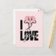 Express votre amour d'une manière unique et ludique avec notre "Charming Character Heart Valentine's Postcard". Cette carte ravissante présente un arrière - plan rose pâle, préparant le terrain pour un personnage de coeur adorable qui apporte le message d'amour à la vie. Le coeur, avec ses yeux mignons et ses mains gaillées de blanc, semble s'embrasser timidement, ajoutant une qualité attachante à la carte. C'est comme si le coeur rougissait de joie et de vacheté d'amour. Le personnage est placé devant des lettres noires et audacieuses qui épellent "I LOVE YOU", avec le mot "LOVE" écrit avec style dans un script fluide et cursif qui chevauche les autres lettres, ajoutant une touche artistique au design général.La "Charming Character Heart Valentine's Postcard" est plus qu'une simple carte postale ; c'est une façon amusante et chaleureuse de montrer votre affection. Parfait pour tous les âges, il est sûr de mettre un sourire sur le visage de quiconque le reçoit.