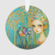Un éléphant stylisé et coloré se tient à côté d'une fille aux grands yeux et d'un casquette fantaisiste à motifs. Des arbres pointillés et des rayures verticales vibrantes remplissent l'arrière - plan d'un sens de l'imaginaire et de l'émerveillement. Photoshop Art numérique CS5