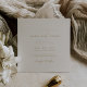 Ces élégantes invitations de mariage carré en ivoire sont parfaites pour un mariage simple. Le design minimaliste moderne présente une crème vintage intemporelle et une calligraphie romantique dorée au style conte de fées bohème.