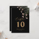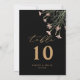 Une carte de numéro de table indépendante ornée d'illustrations fleurs sauvages délicates sur un arrière - plan noir.