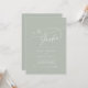 Ces élégantes invitations de mariage vert jardin de charme sont parfaites pour un mariage simple. Le design minimaliste moderne présente un vert pastel intemporel et une calligraphie romantique au style conte de fées bohème.