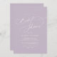 Ces élégantes invitations à la douche nuptiale violet de charme sont parfaites pour un wedding shower simple. Le design minimaliste moderne présente une lavande pastel intemporelle violet et une calligraphie romantique avec style conte de fées bohème, parfait pour un mariage de jardin de printemps ou d'été.