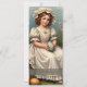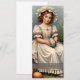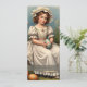 Une jeune fille en robe vintage élégante est assise sur une rondelle en bois, tenant un oeuf de Pâques joliment décoré. Entourée de fleurs en fleurs et d'un lapin curieux, la scène respire la chaleur, la nostalgie et l'esprit de Pâques.
