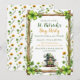 A rustic, nature‑themed invitation layout with bright green clovers and playful illustrated details. All text and elements are customizable, and the matching clover pattern appears on the reverse side.
