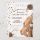 Invitation charmante pour la baby shower de vos jumeaux avec "Deux petits ours adorables sont en route" dans des couleurs crème et marron pastel présentées dans un style bohème et une écriture moderne. Célébrez l'arrivée prochaine de vos petits avec notre adorable invitation pour la baby shower de vos jumeaux ours. Personnalisez avec vos détails pour une invitation mémorable ! Profitez de votre future maman !