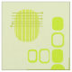 Un design d'art abstrait moderne du milieu du siècle qui aurait pu s'intégrer dans les années 1950. Diverses formes de cercles ovales et lignes en chartreuse ou balle de tennis brillant jaune.