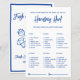 Ajoutez une énergie ludique à votre fête de mariage avec ce jeu de chasse au sac à main — une chasse au trésor dans les sacs à main amusante conçue dans un style de marché frais bleu et blanc épuré.