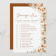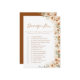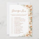 Ajoutez de l'excitation à votre douche nuptiale avec ce jeu bohème de chasse au trésor en terre cuite. Doté de roses d'aquarelle rustique et de lys calla, ce design floral clair et audacieux apporte une touche élégante et amusante à votre célébration. Les clients aimeront coller des photos et relever les défis tout en appréciant les magnifiques détails floraux du boho. Parfait pour un thème rustique, bohème, ou terre cuite nuptiale douche, ce jeu mêle charme, rires et élégante art floral.