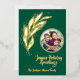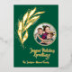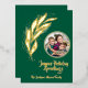 Cette douce et élégante aquarelle feuille d'or design avec feuille d'or, une photo en anneau et un "Joyous Holiday" salutations sur fond vert chasseur profond fait une carte de voeux de vacances impactée et élégante. La feuille d'or et le design simple de feuille d'aquarelle est élégant et pourtant simple et le flux feuille avec un mouvement gracieux. Vous pouvez ajouter votre propre photo et un nom de famille ou un nom individuel.
