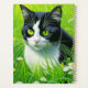 Cute tuxedo chat noir et blanc assis dans un pré de marguerites blanches. L'art Ai.