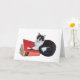 Un chat noir et blanc lit un grand livre rouge. Customisez en ajoutant vos propres mots à cette carte à puce.