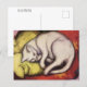 Carte postale d'art avec le tableau, Chat on a Yellow Coussin (1912), de Franz Marc (1880-1916), artiste expressionniste allemand. Il a été le fondateur du groupe d'artistes appelé le Blue Rider. Un chat blanc fait une sieste sur un coussin jaune.