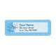 Dessin de chat bleu de la main jouant du violon. Champs de texte personnalisés pour le nom et l'adresse.