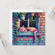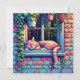 L'art de Ai représente un chat endormi sur un rebord de fenêtre entouré de plantes suspendus et d'un mur en briques. Belle oeuvre pour plante ou amoureux des chats.