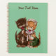 Ce planificateur est vert menthe avec un chat jaune souriant portant un casquette blanc donnant des rats de son panier à bois à son ami de chat mâle brun. Customisez votre texte sur le devant avec le modèle.