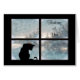 La silhouette d'un chat est assise dans une fenêtre avec une scène hivernale froide à l'extérieur. Je pense à toi au-dessus d'elle.