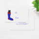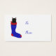 Peinture d'un adorable chaton noir dans un bas de Noël bleu et rouge, imprimé en carte de visite, à utiliser comme étiquettes cadeaux. Peut customiser le À et le De avec votre propre texte personnel. Joyeux Noël.