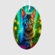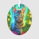 Joli chaton assis devant les arbres de Noël éclairés. Ornement de Noël personnalisé.