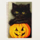 Planificateur avec un chat Halloween et une lanterne jack-o’. Un chaton noir moelleux pose sur le dessus d'un citrouille orange sculpté. Un cadeau amusant pour les célébrations d'Halloween et les amoureux de les chats!