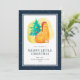 Mignonne carte de Noël meowy avec une aquarelle illustrant un chat gras portant un casquette du Père Noël. Personnalisez facilement cette carte de vacances bleu aquarelle avec votre nom de famille et votre texte.