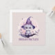 Ajoutez une touche de magie à votre Halloween avec cette carte de voeux fantaisiste avec l'expression "Chat Enchantant". Un mignon chat sorcier violet pastel, avec une expression de charme, perche sur une branche pastel violet assortie, rayonnant le charme mystique et des vibes éffrayantes douces. Parfait pour les amateurs de goth pastel, de créatures magiques et d'esthétique douce d'Halloween. Idéal pour les amoureux de les chats, les âmes sorcières, et les fans de l'art d'Halloween mignon et rêveur.