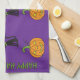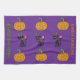 3 chats géants avec des lollipops parmi 6 malicieux jack-o-lanternes sur un brillant arrière - plan violet. Vous pouvez personnaliser cette serviette des deux côtés ! Un complément amusant à votre cuisine Halloween !