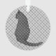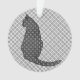 Graphique numérique multimédia mixte d'un chat assis d'inspiration japonaise, dans un floral stylisé, contre un arrière - plan imprimé kimono - Noir et blanc avec des nuances d'argent gris / gris