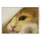 Photo d'un chat de la Forêt norvégienne jaune qui regarde sous une feuille.