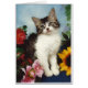Ce joli petit chaton pose au milieu des fleurs du printemps pour une carte de voeux toute occasion.