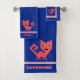 Cet ensemble de serviettes épais et veloutés présente un style de dessin animé mignon, chatte kitty rose chaud curieux sur un riche arrière - plan bleu avec alternance des bordures blanches et roses chaudes au-dessus d'une large bande bleue au fond. La taille de la baignoire est prête à personnaliser avec votre nom (ou celui de votre enfant), serviette a de l'espace pour un monogramme.