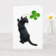Chat Noir Chanceux avec Carte de Trèfle à 4 Feuill