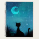 chat noir regarde le croissant de lune dans un beau ciel étoilé, avec des couleurs noir et turquoise, et un nom personnalisé, année.