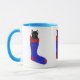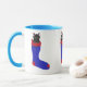 Chat noir mignon et adorable, chaton dans un rouge et bleu Noël Stocking, est imprimé sur des tasses personnalisées. Merci pour faire du shopping à CherylsArt sur Zazzle.